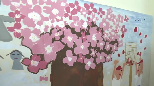 The painting on the wall in the corridor was drawn by the students before the school closed.