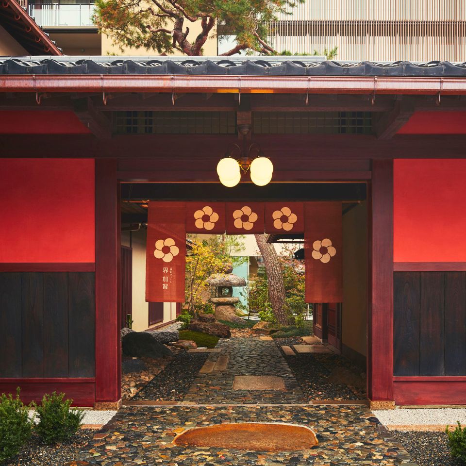 "Kai Kaga" is a hot spring inn located in the center of Yamashiro Onsen, "Yu no Kawara." It welcomes guests in a registered tangible cultural property building, where you can experience crafts such as Kiyomizu-yaki and Yamazato lacquerware. Relax in the hot springs, and be delighted by local delicacies. Moreover, the charm of this inn lies in its ability to remain "properly enjoyable" even into the night.