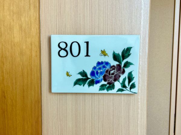 From room plates and room keys, even the tea sets are original Kiyomizu-yaki, and various artistic elements such as Kiyomizu-yaki tiles in the interior, lacquerware with Yamanaka Urushi, water-binding decorations, and panels featuring patterns of Kaga Yuzen are subtly incorporated.
