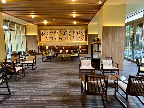 Once you enter the building, please look up at "Waku no Uchi" (the inner frame) in the front hall. It is a traditional architectural structure assembled without using metal fittings, featuring thick daikoku pillars and log beams. It is considered a rare structure that is difficult to reproduce with the same materials in modern times. Just by looking up, you will experience a moment of switching into travel mode.