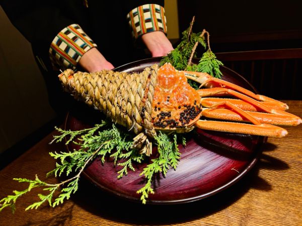 The star of winter is none other than crab. Among them, the famous dish is "Live Crab Steamed with Saltwater-soaked Rope." This unique dish, exclusive to Kaiso, involves wrapping a rope soaked in saltwater around the crab and steaming it. The entire process of steaming adds a dramatic touch, instantly making the dining table more lively.